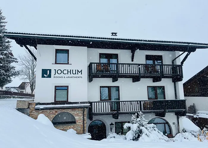 Die Gäste vom Jochum Hotel Garni bekommen Zimmer mit einem persönlichen Safe, einem Schreibtisch und einem Flachbildfernseher mit Satellitenkanälen. In einigen Zimmern gibt es ein privates Badezimmer mit Badelaken und einer Dusche.
